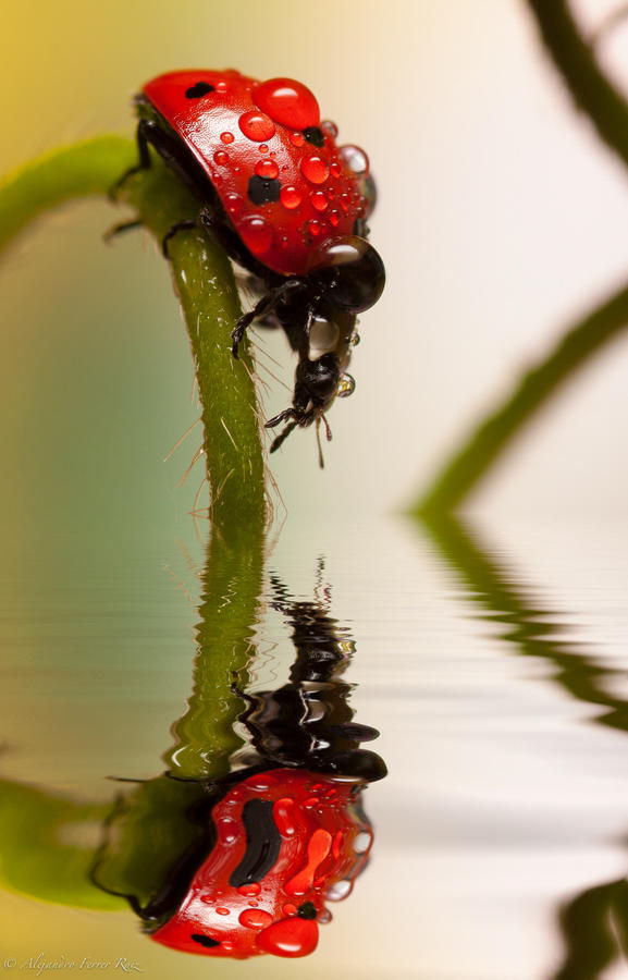西班牙的摄影师 Alejandro Ferrer Ruiz 就是这样一位细心观察生活的人,他用自己的镜头捕捉了一系列雨中小瓢虫的美丽瞬间。